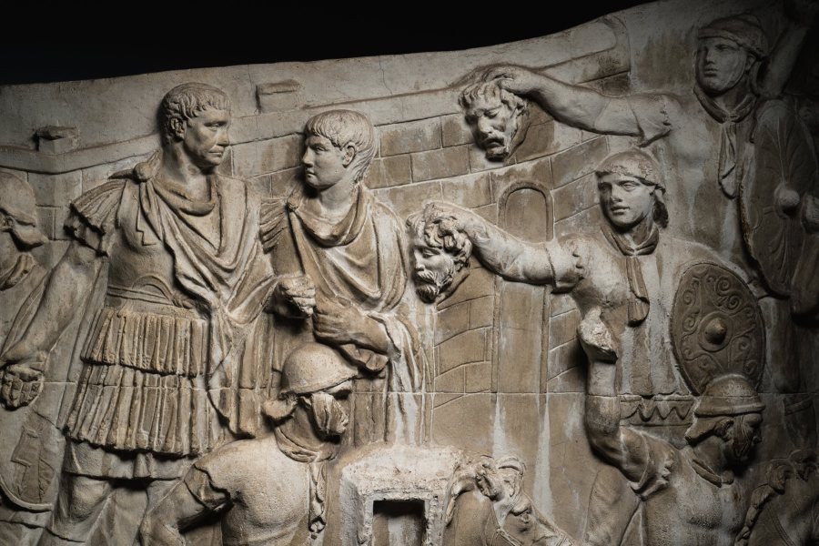(Imagen: réplica en yeso relieve Columna Trajana, Kenneth Garrett , Museo de Historia Nacional de Rumania, National Geographic España, mayo de 2015)